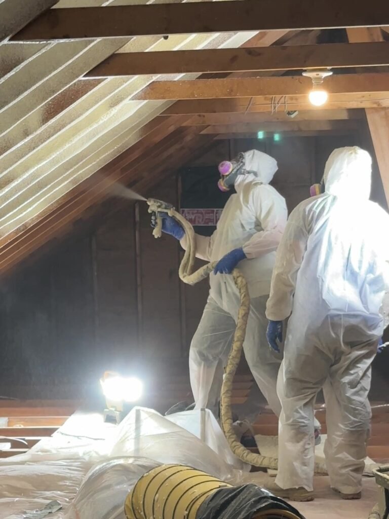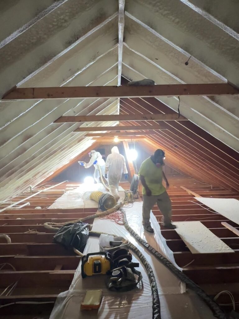 Insulating an attic in New Canaan with Closed and Open Cell Spray Foam with an upgraded “double pumper”. Double the capacity, half the time, the same SAFE and EFFECTIVE